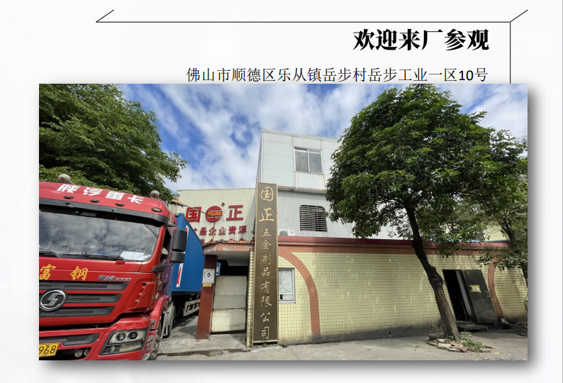 佛山市國正五金制品有限公司成立(li)于(yu)2005年,位于(yu)交通便 利,供(gong)應鏈完整,制造業發(fa)達的(de)(de)廣東省佛(fo)山市樂從(cong)鎮。我們是(shi) 一家集研發(fa)、生產(chan)(chan)、銷售、服務于(yu)一體的(de)(de)不銹(xiu)鋼五(wu)(wu)金配(pei)件(jian)(jian)(jian)(jian)、不 銹(xiu)鋼立(li)柱(zhu),不銹(xiu)鋼護(hu)(hu)欄(lan)和(he)不銹(xiu)鋼扶手(shou)配(pei)件(jian)(jian)(jian)(jian)的(de)(de)專(zhuan)業制造商。擁(yong)(yong)有(you)(you) 各種電商平臺(tai)買家,支(zhi)持(chi)加工(gong)定制,我們擁(yong)(yong)有(you)(you)自主(zhu)品牌,深受 客(ke)戶青睞,公司占地4000平米,年產(chan)(chan)量不銹(xiu)鋼五(wu)(wu)金配(pei)件(jian)(jian)(jian)(jian)、不 銹(xiu)鋼立(li)柱(zhu),不銹(xiu)鋼護(hu)(hu)欄(lan)和(he)不銹(xiu)鋼扶手(shou)配(pei)件(jian)(jian)(jian)(jian)等,高達20萬(wan)套,我 們擁(yong)(yong)有(you)(you)良(liang)好的(de)(de)交付能力,現(xian)貨(huo)可(ke)以(yi)做(zuo)到48小(xiao)時發(fa)貨(huo) 我們擁(yong)(yong)有(you)(you)自己專(zhuan)業的(de)(de)工(gong)程項目(mu)部門,為(wei)國(guo)內外(wai)建筑公司提供(gong)有(you)(you) 效的(de)(de)設計(ji)安裝解決方(fang)案(an)。無論是(shi)從(cong)我們的(de)(de)產(chan)(chan)品目(mu)錄直接選擇現(xian) 有(you)(you)的(de)(de)產(chan)(chan)品,還是(shi)為(wei)您(nin)的(de)(de)工(gong)程尋求支(zhi)持(chi)幫助,您(nin)都可(ke)以(yi)與我們的(de)(de) 客(ke)服人員討論您(nin)的(de)(de)采購需(xu)求。我們將竭誠為(wei)您(nin)提供(gong)專(zhuan)業、優(you)質 的(de)(de)商務服務!